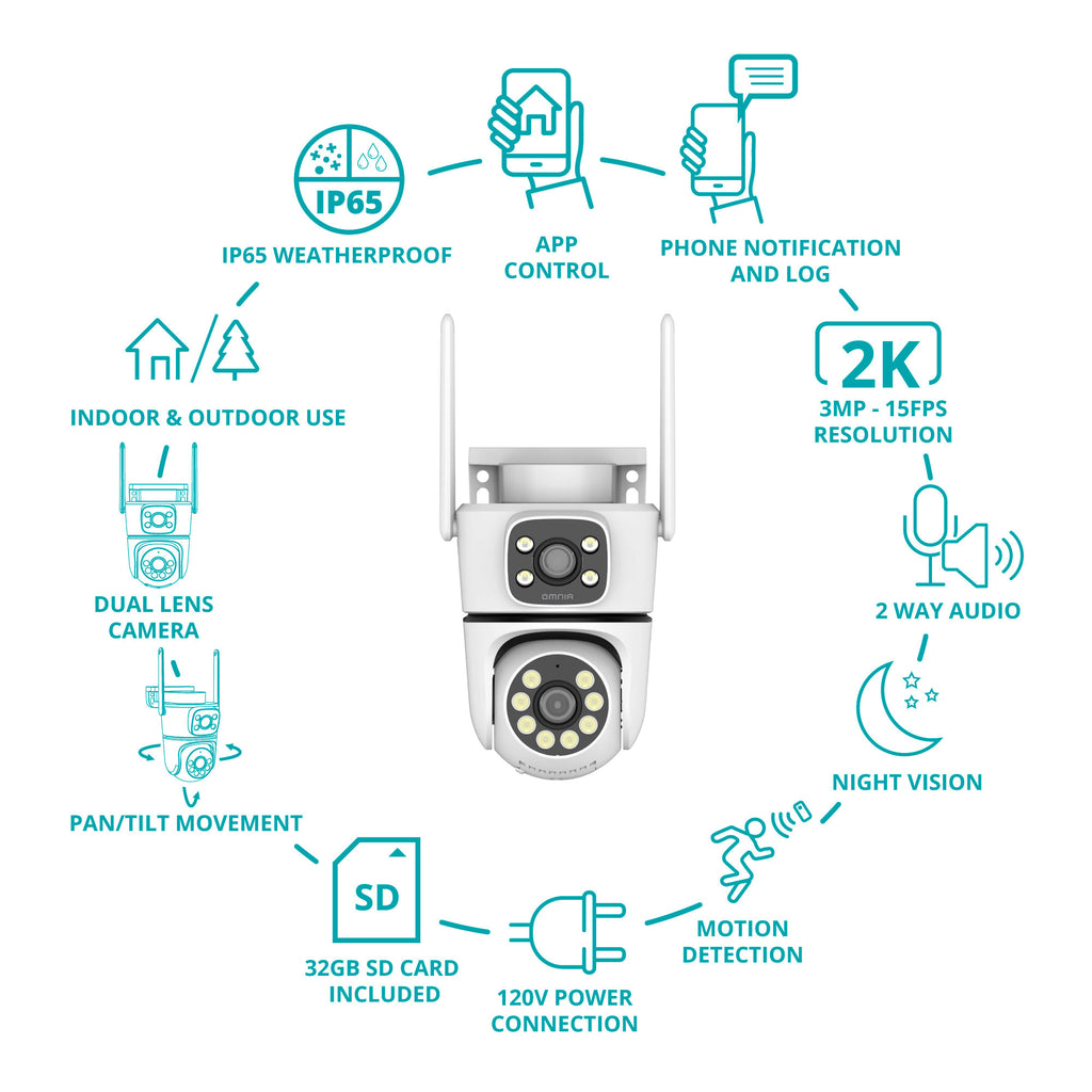✔️Mantén tu hogar seguro y sin preocupaciones. Control de movimiento horizontal de 0~355° y vertical de 0~90° para cubrir cada espacio sin problemas. Certificación IP67 para uso en exteriores, posibilidad de POE y ONVIF para mayor versatilidad de conexión.