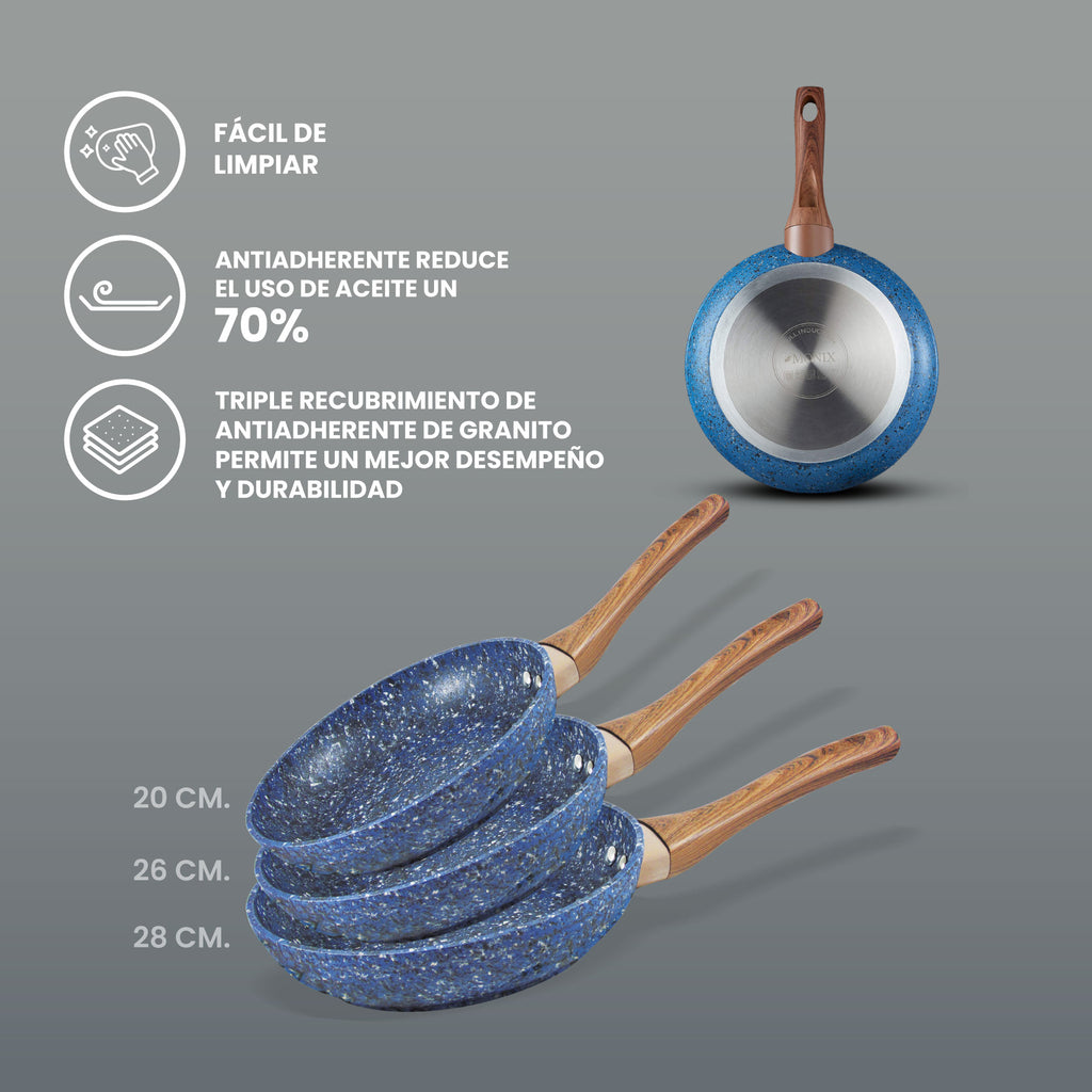 ✔️Antiadherente de granito el mejor antiadherente del mercado.Excelente antiadherente reduce el uso de aceite hasta un 70%.