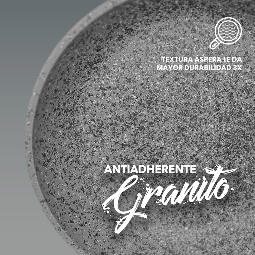 ✔️Antiadherente de granito el mejor antiadherente del mercado.Excelente antiadherente reduce el uso de aceite hasta un 70%.