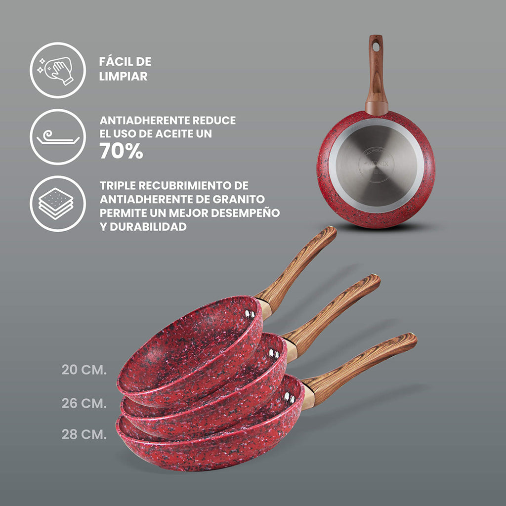 ✔️Antiadherente de granito el mejor antiadherente del mercado.Excelente antiadherente reduce el uso de aceite hasta un 70%.