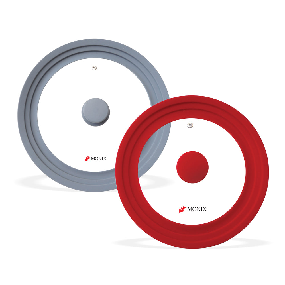 ¡Una tapa tres medidas! ✔️Cada una se ajusta a tres tamaños diferentes debido a su diseño con niveles. ✔️Confeccionadas en vidrio temperado. ✔️Borde y pomo de silicon resistente al calor..
